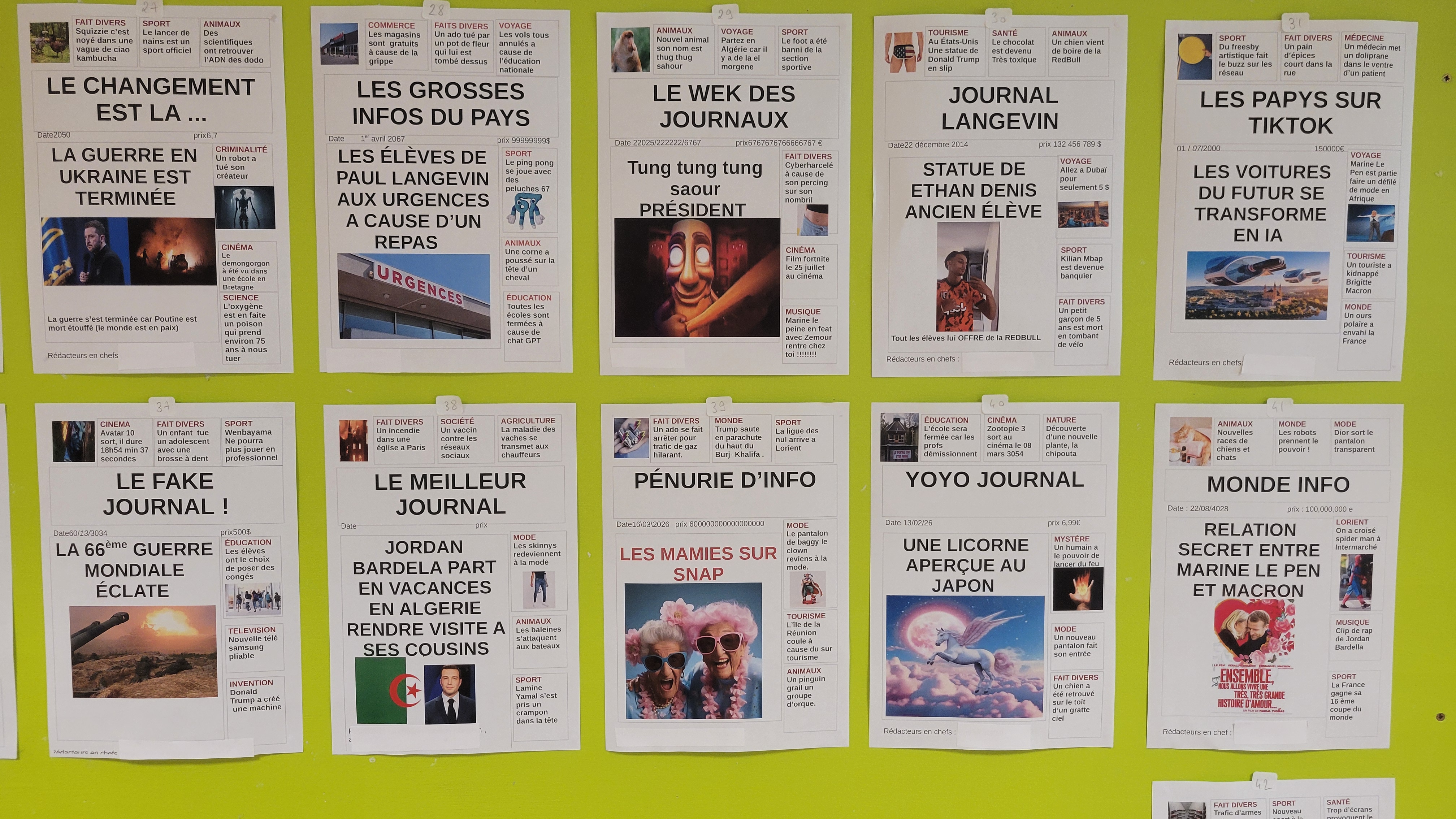 La désinformation est un fléau, les élèves en sont conscients, mais rien n'empêche de s'amuser avec l'actualité qui n'est pas très gaie en ce moment.